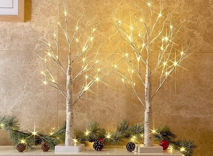 If you’re looking for a decorative piece that instantly brings warmth and festive charm to your home, the PEIDUO 2FT Birch Tree with LED Lights (2-Pack) is one of the most elegant and versatile indoor Christmas décor items available. With its natural birch-style bark, warm white fairy lights, and battery-powered convenience, this lighted tree adds a cozy and magical touch to any room.